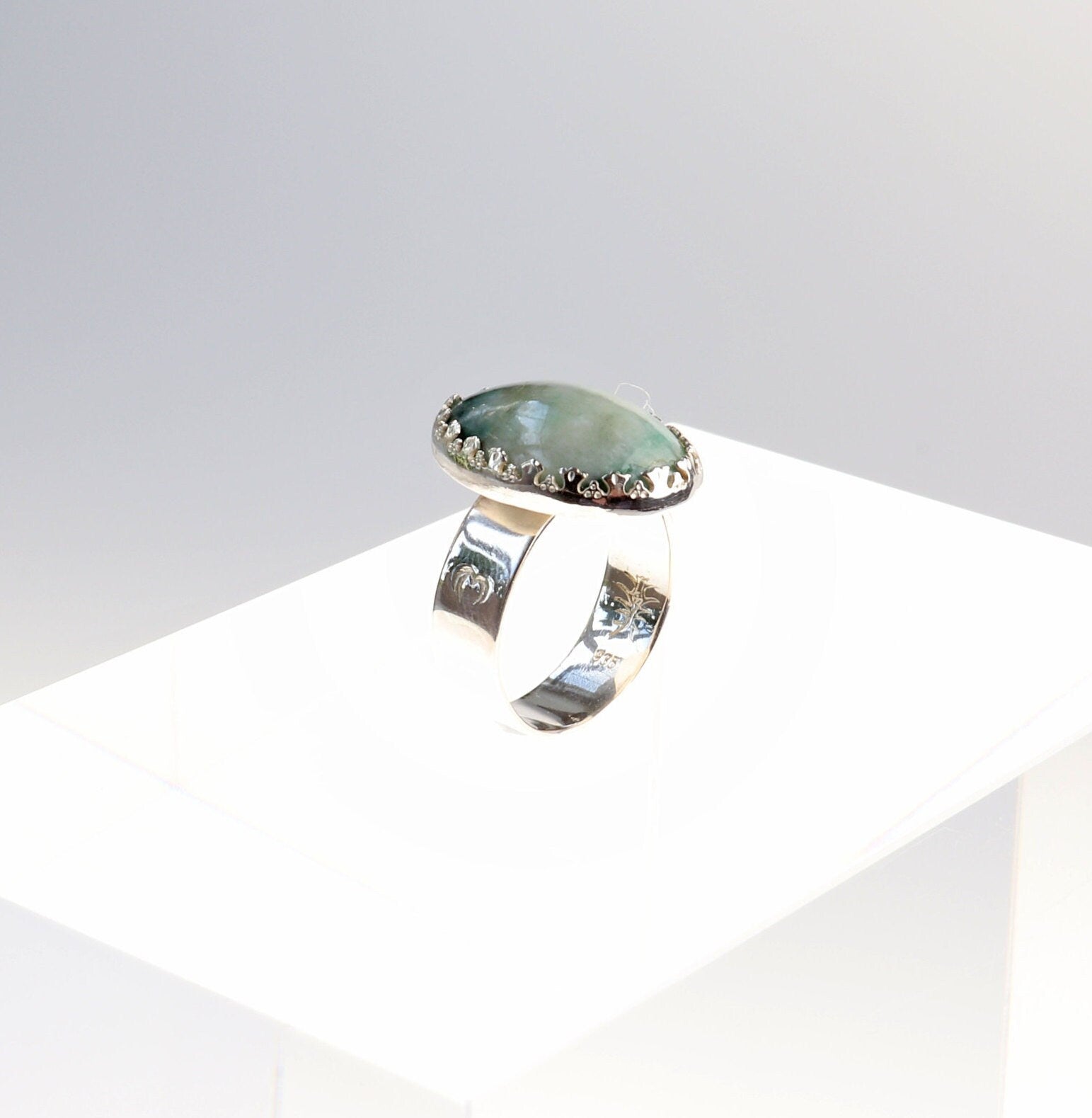 The gemstone is set in premium Argentium® 935 Silver, a hypoallergenic, tarnish-resistant alloy made from 100% recycled silver. With a bold setting and clean 1/4" band, this piece offers natural elegance and everyday comfort.