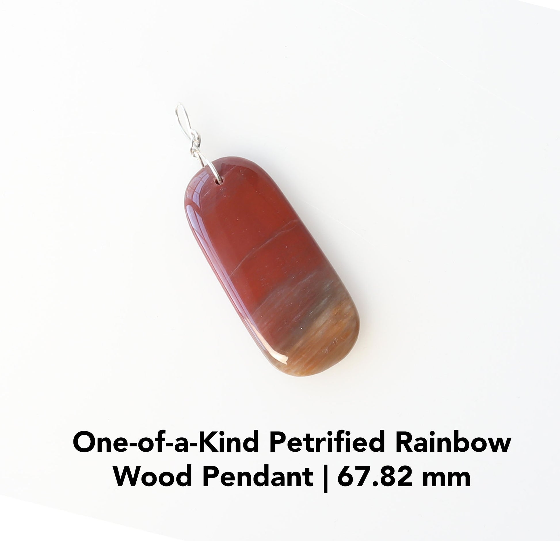 One-of-a-Kind Petrified Rainbow Wood Pendant – Earthy Warm Tones
