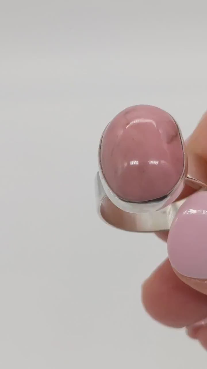 Pink Rhodonite Ring, Size 7.5 in Argentium® Silver, Handmade in USA