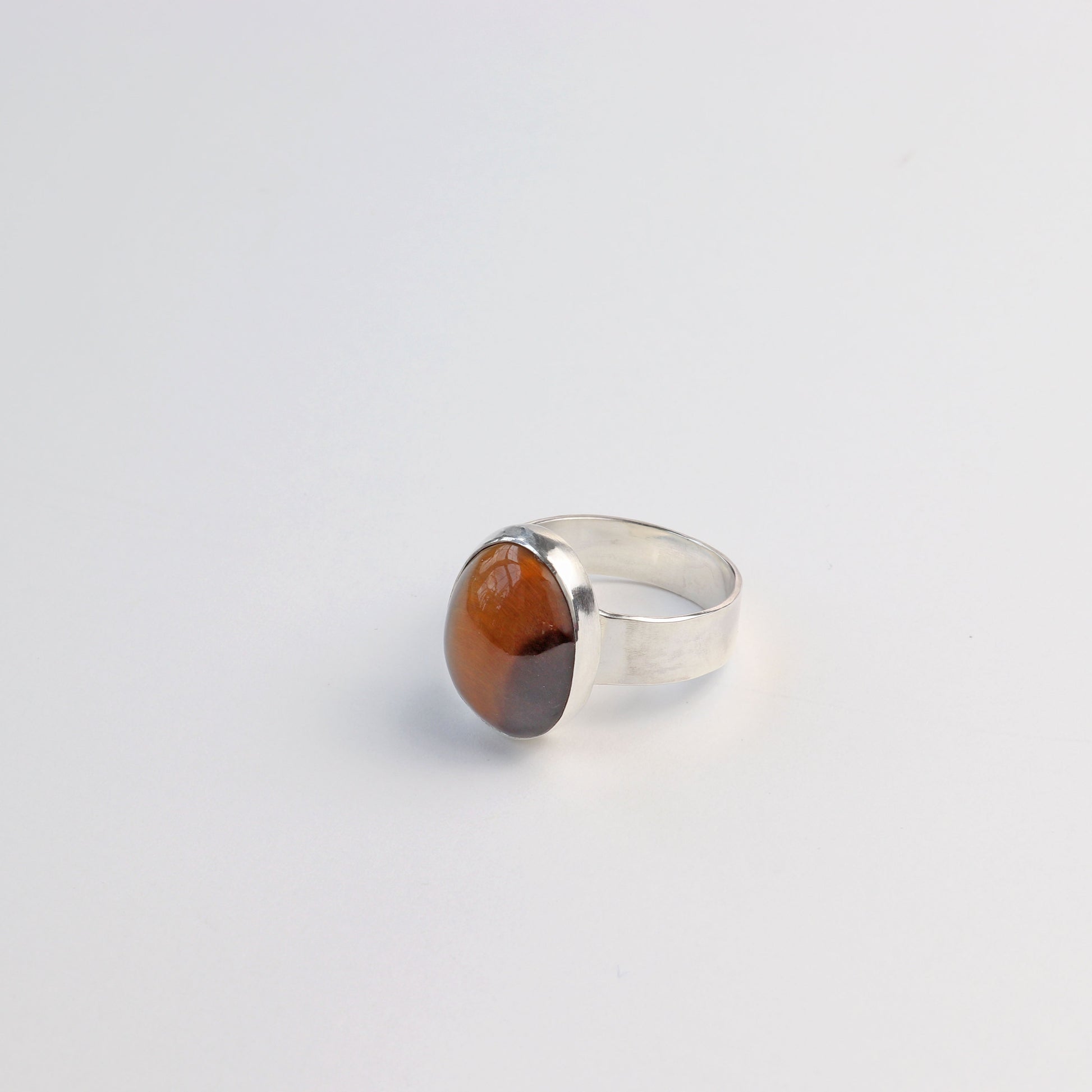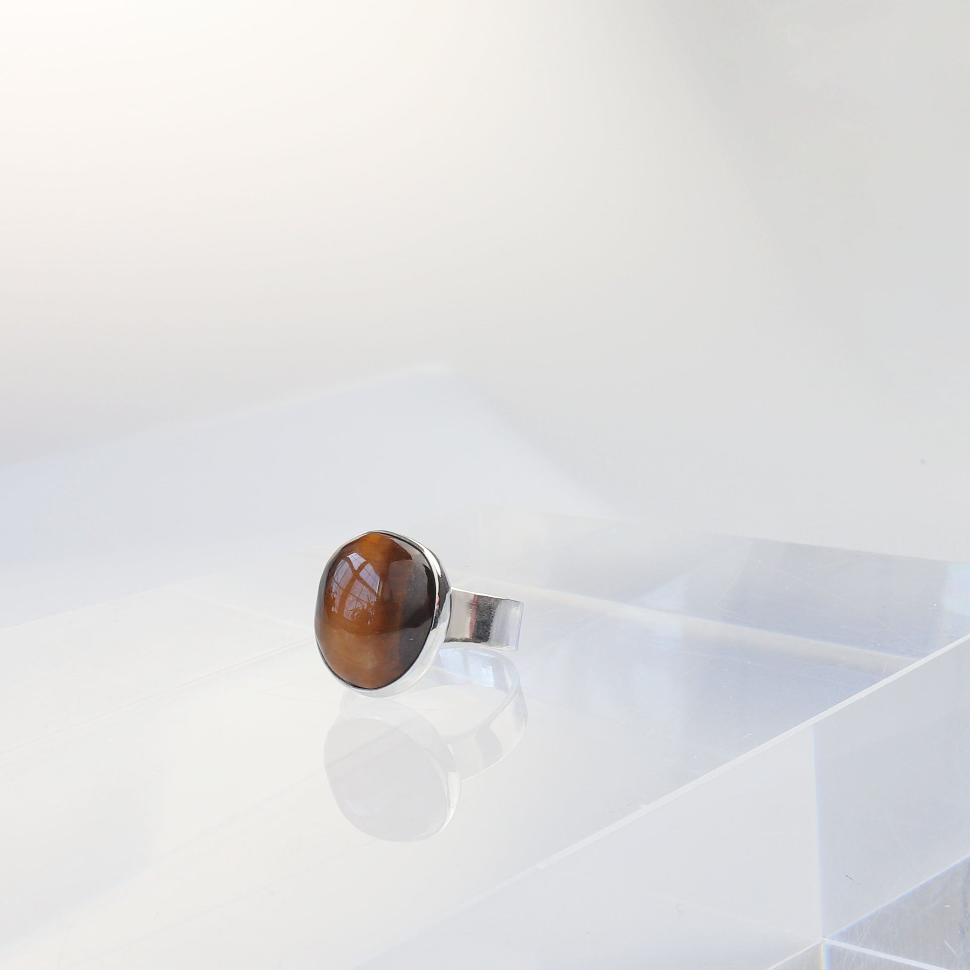 Tiger’s Eye Gemstone Ring – Size 8.25 in Argentium® Silver