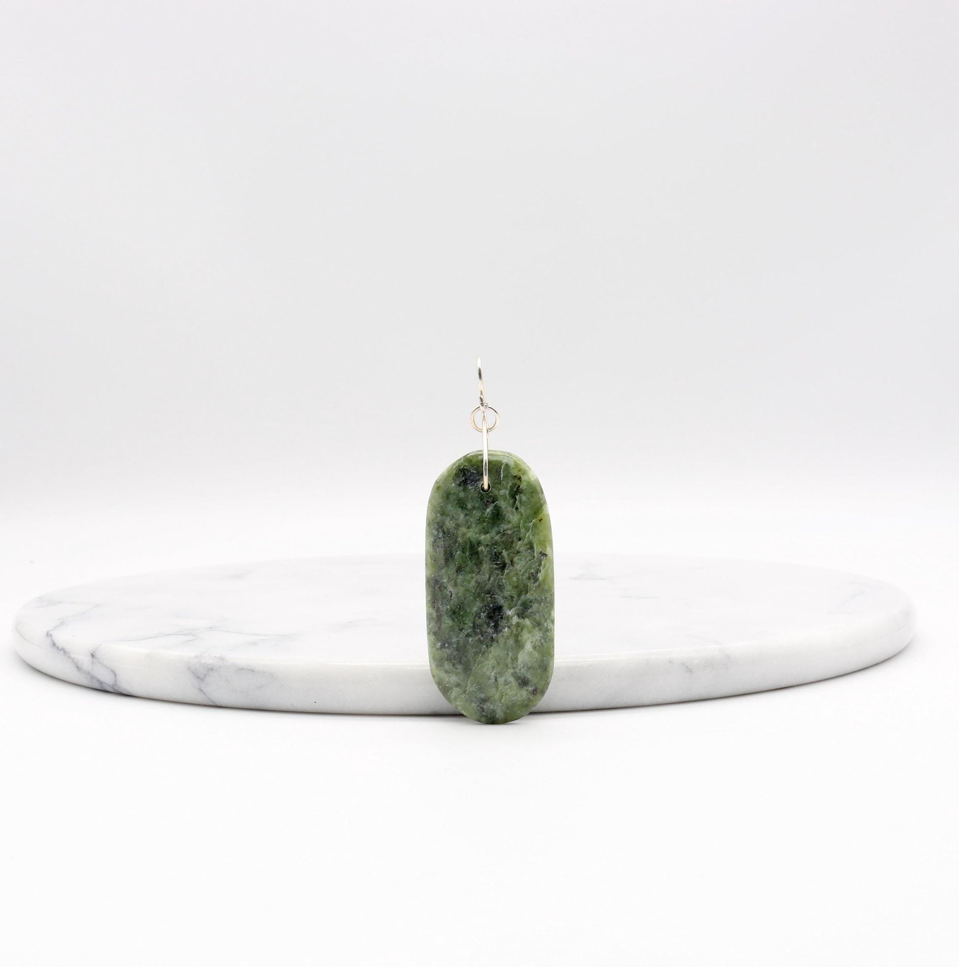 This one-of-a-kind Nephrite Jade pendant showcases rich deep green hues and natural mineral patterns, hand-cut and polished to a smooth, glowing finish. Sourced from Wyoming’s Wind River and Granite Mountain regions, this premium-quality jade is known for its superior texture, symbolic value, and timeless appeal.